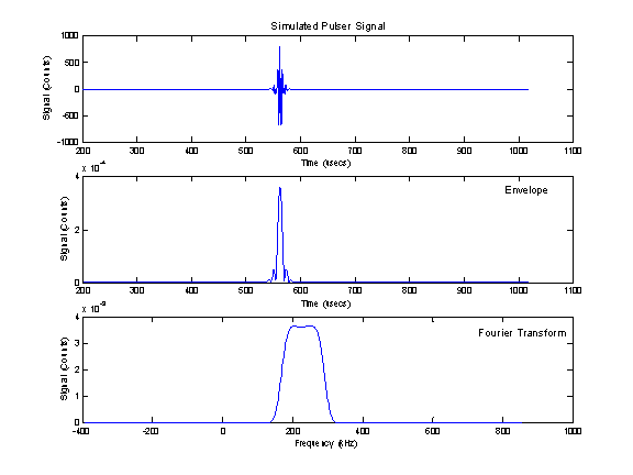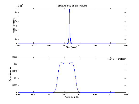 third plot shows the Fourier Transform of the signal. The SIA-7 processes the chirp based signal into a Synthetic Impulse™