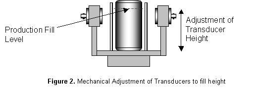 The height of the transducers is adjusted below the production fill level shown in Figure 2. The flexibility of the instrumentation means fill status can be monitored anywhere on the production line. As each can passes between the transducers the system indicates if the can is empty or full using a logic output. The signal is then read by a PLC or external controller that initiates the process of removing the empty can. SpecificationsThe SIA-7 measures accurately to speeds of 1200 cans per minute. Results are not affected by agitation caused by the on-line process. The SIA-7 produces two logic outputs to identify the state of each can. One logic output triggers every time a can passes between the transducers and the other outputs a full or empty condition.    |